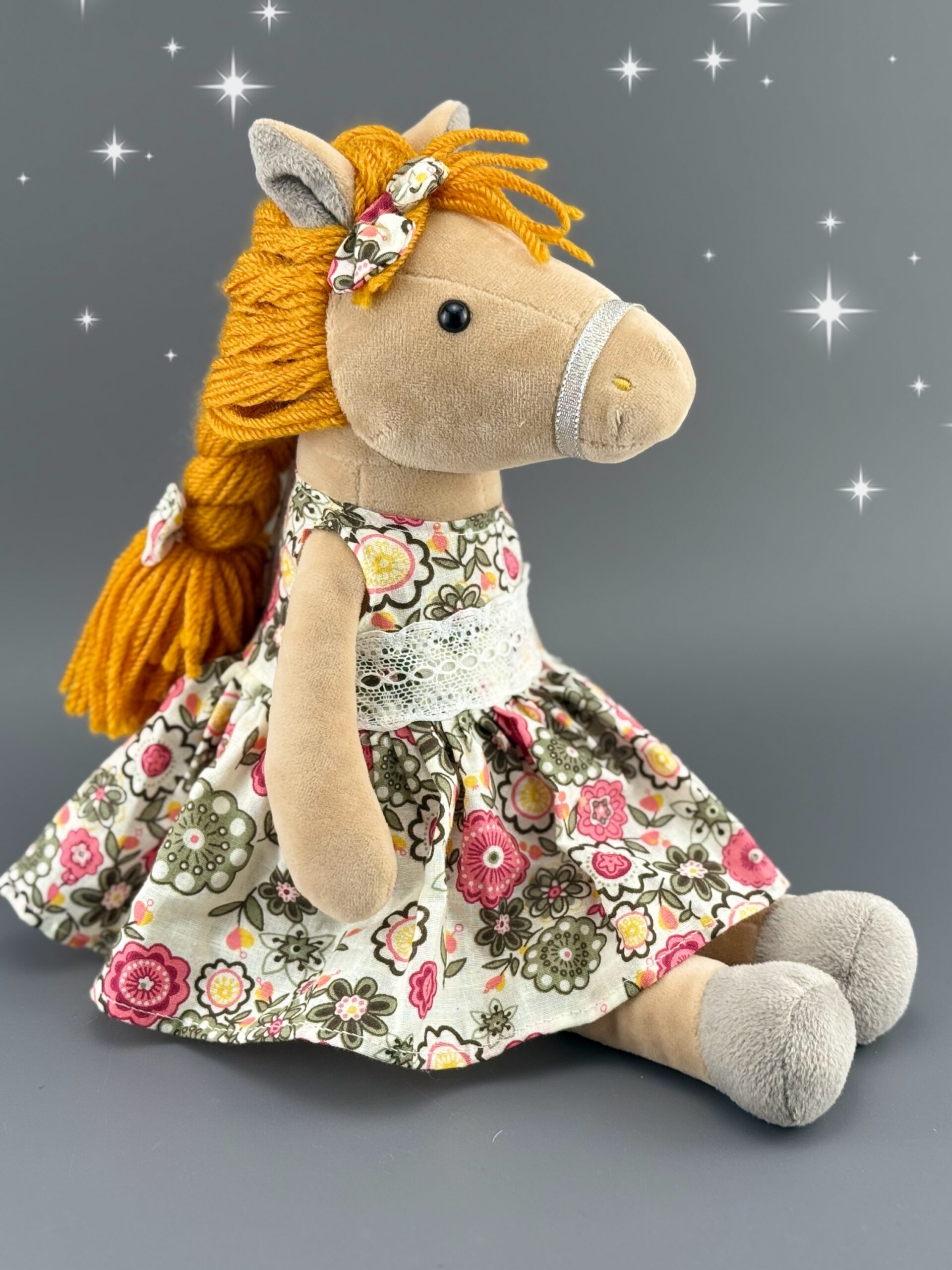 Артикул: M522 Категории: 2026 - год Лошади, Символ года Описание Описание Игрушка мягкая Лошадка Веснушка Размер — 35 см (сидя 23 см) Похожие товары Игрушка мягкая «Рыжая Буренка»Подробнее Интерьерная кукла Тигр в жилеткеПодробнее Игрушка мягкая «Бык Петя в бабочке» 15 см.Подробнее Интерьерная кукла Тигр в шарфе и свитереПодробнее